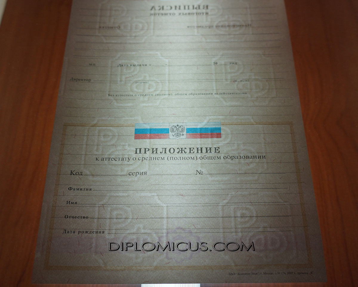 Аттестат о среднем образовании за 11 класс