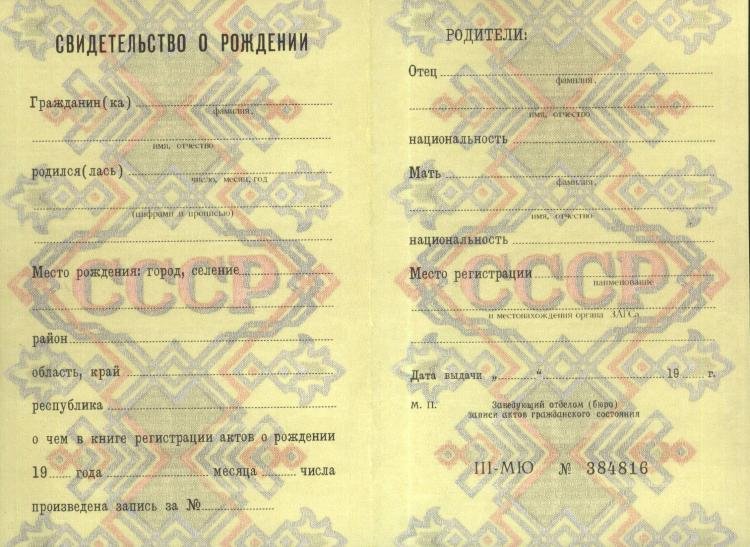 Образец свидетельства о рождении